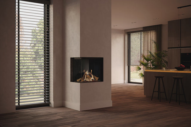 Maestro 60/2 is available for bottled gas or natural gas. It is available with a black smooth (matt black) or ceraglass (glossy black glass) background. It is also available with CV (clear view) non-reflective glass and with LED glow base.