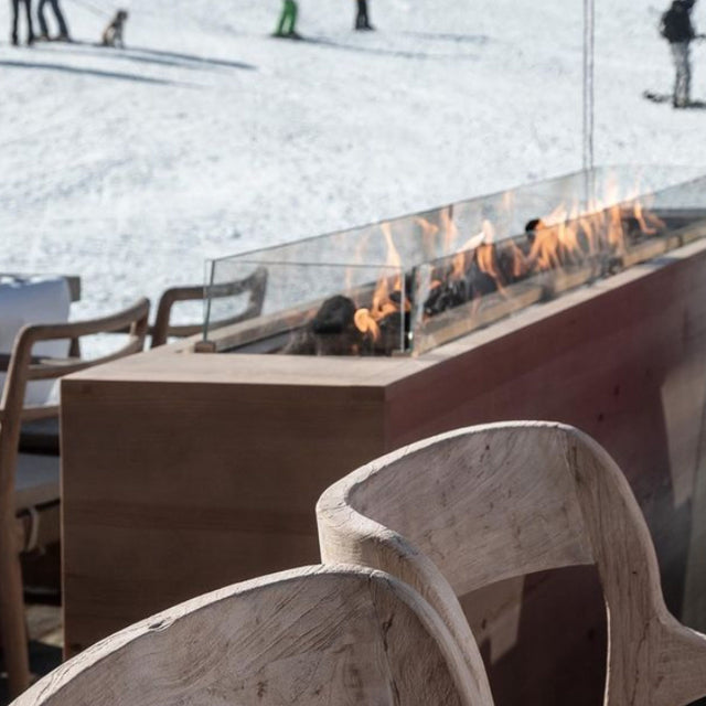 Made from the most resistant materials to the external atmospheric conditions, the rectangular gas combustion zone has a unique, welcoming and cozy character that embraces all those who prefer the experiences that come with living in outdoor spaces.
